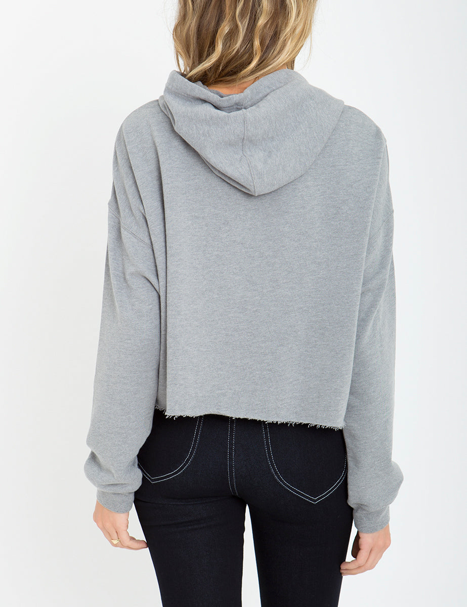 A raw-edge cropped hem ups the cool factor of a cotton-blend hoodie printed with strong logo branding.