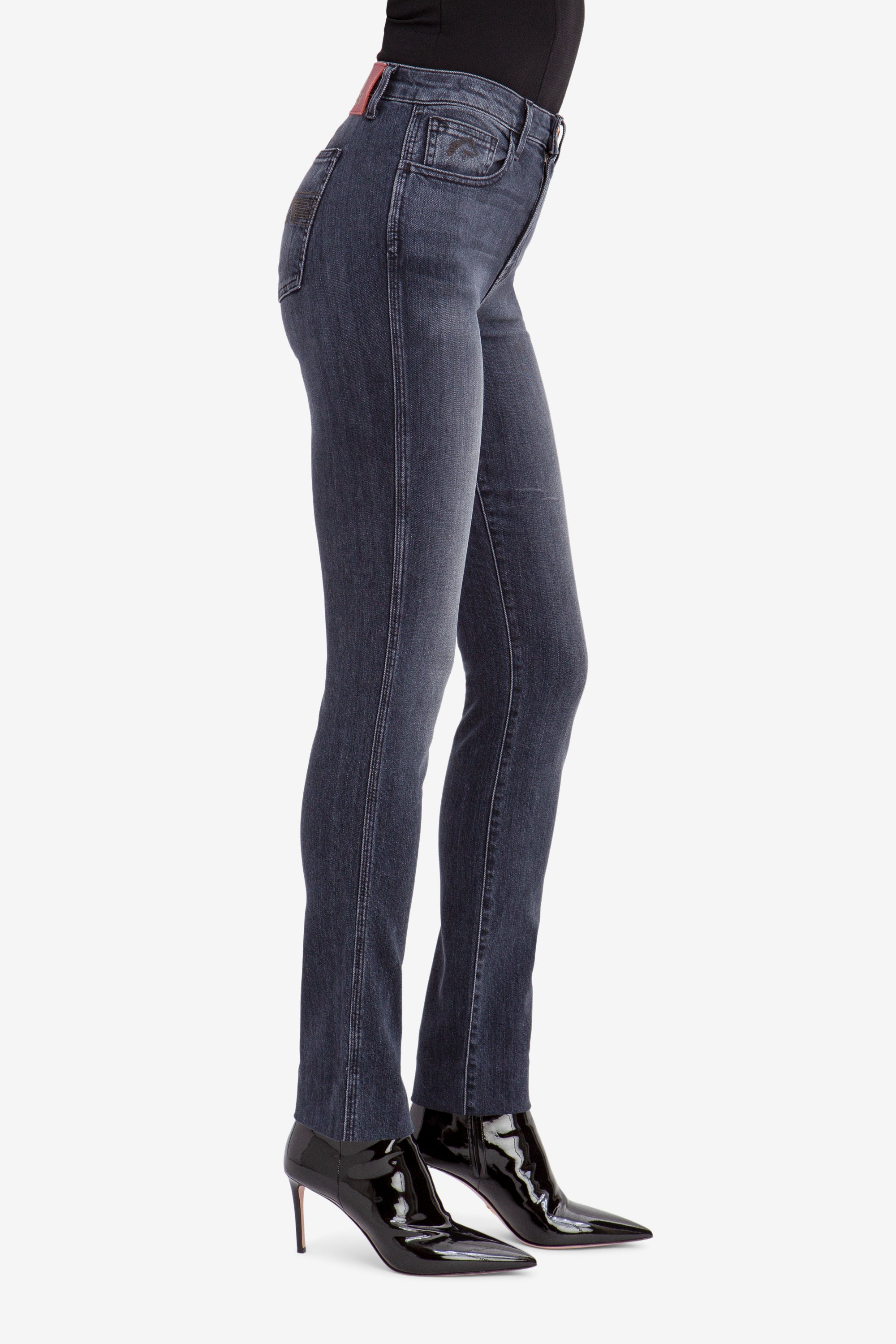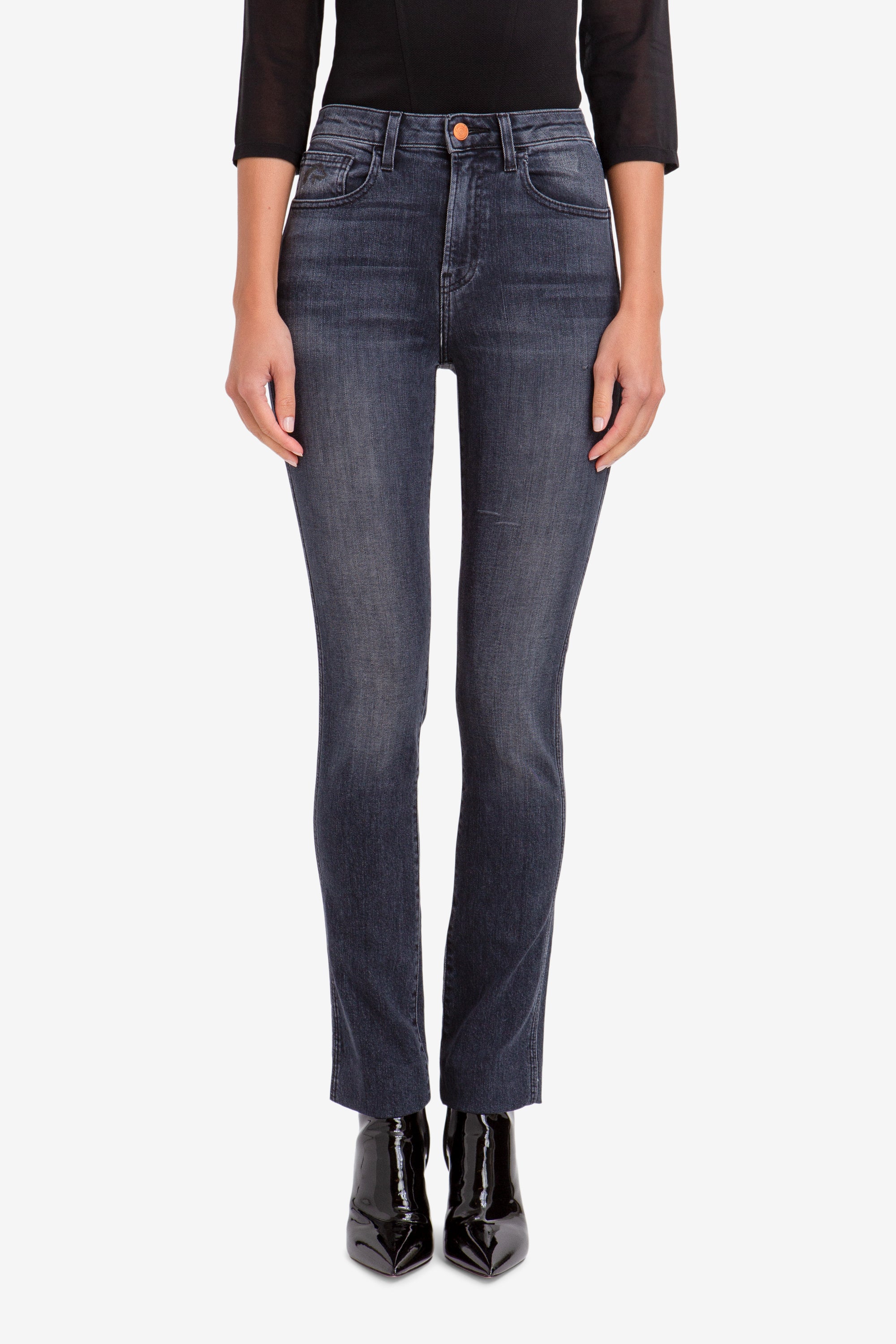 Worn black rinse and a bit of stretch gives these ultra flattering high rise slim jeans that vintage classic feel you love.