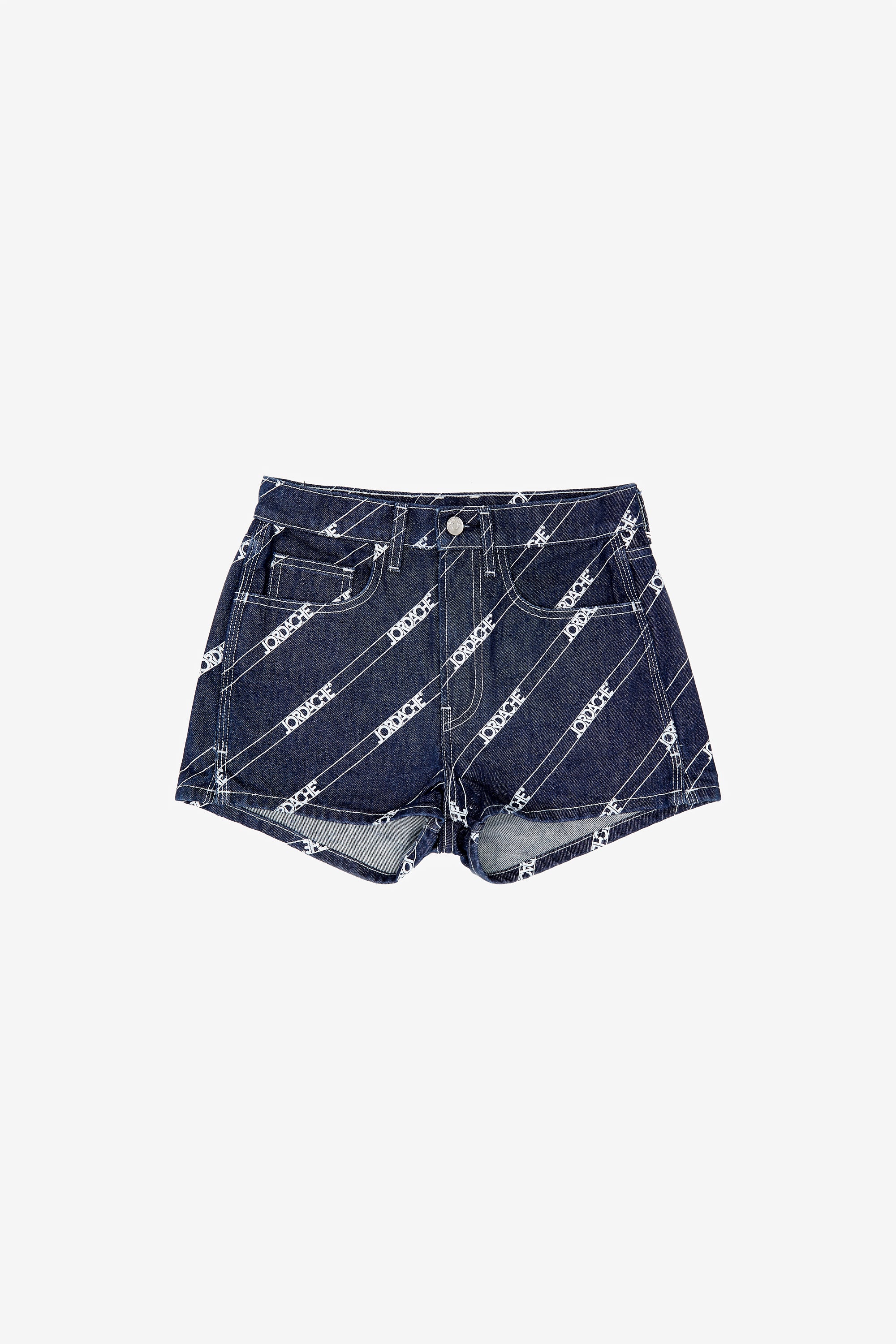 A high-rise short that sits above the waist and shows off the legs, in custom logo printed denim that is rinsed and saturated with color for an authentic denim statement.