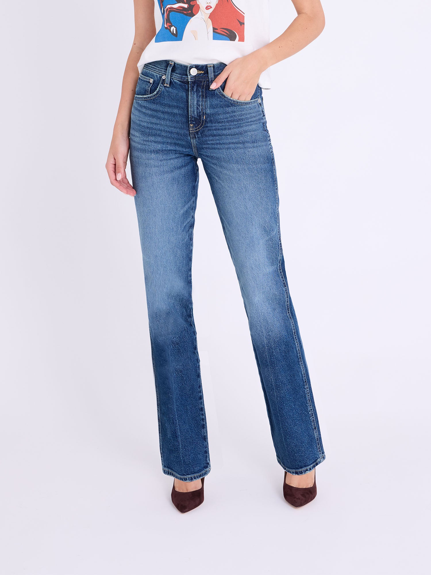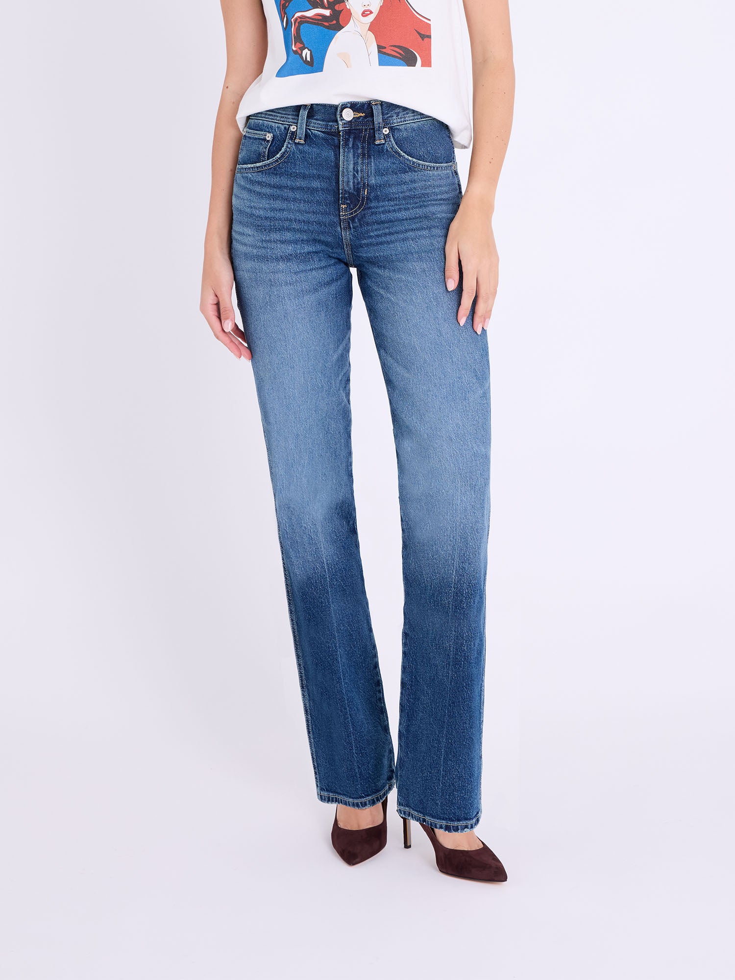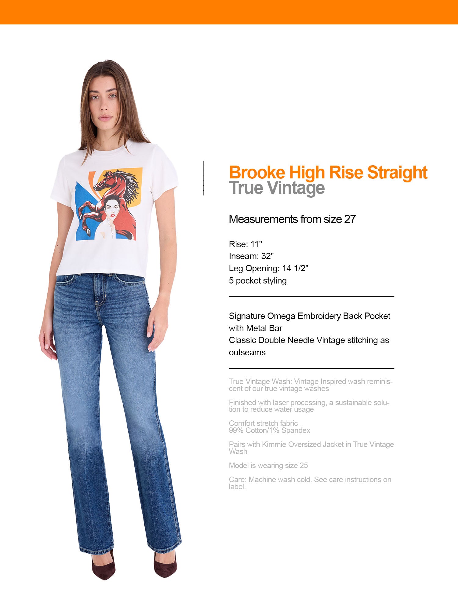 Brooke High Rise Straight – sleek, narrow, and timeless with vintage double-needle seaming in True Vintage and All Day Wash finishes. Pairs with Kimmie Oversized Jacket in True Vintage Wash