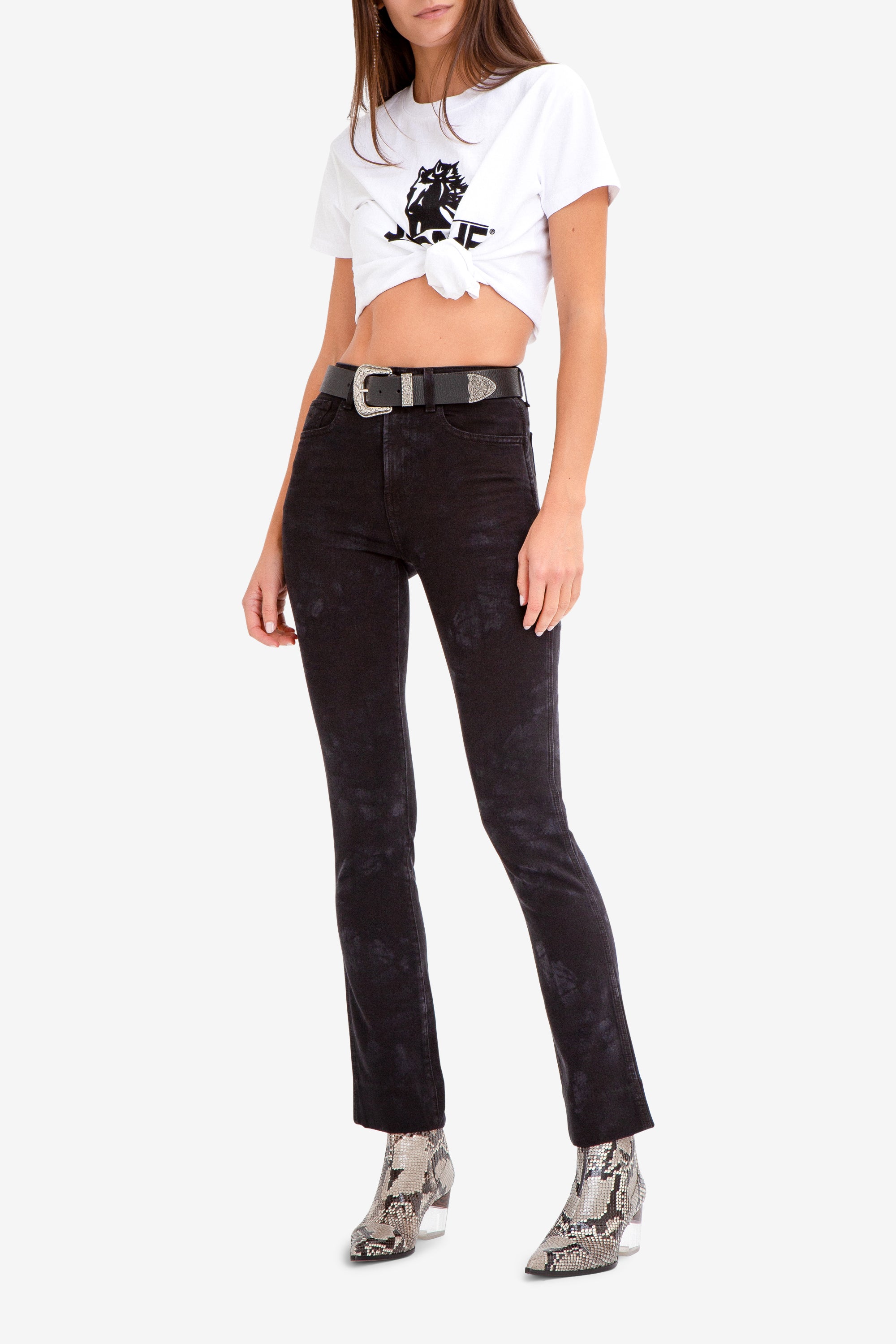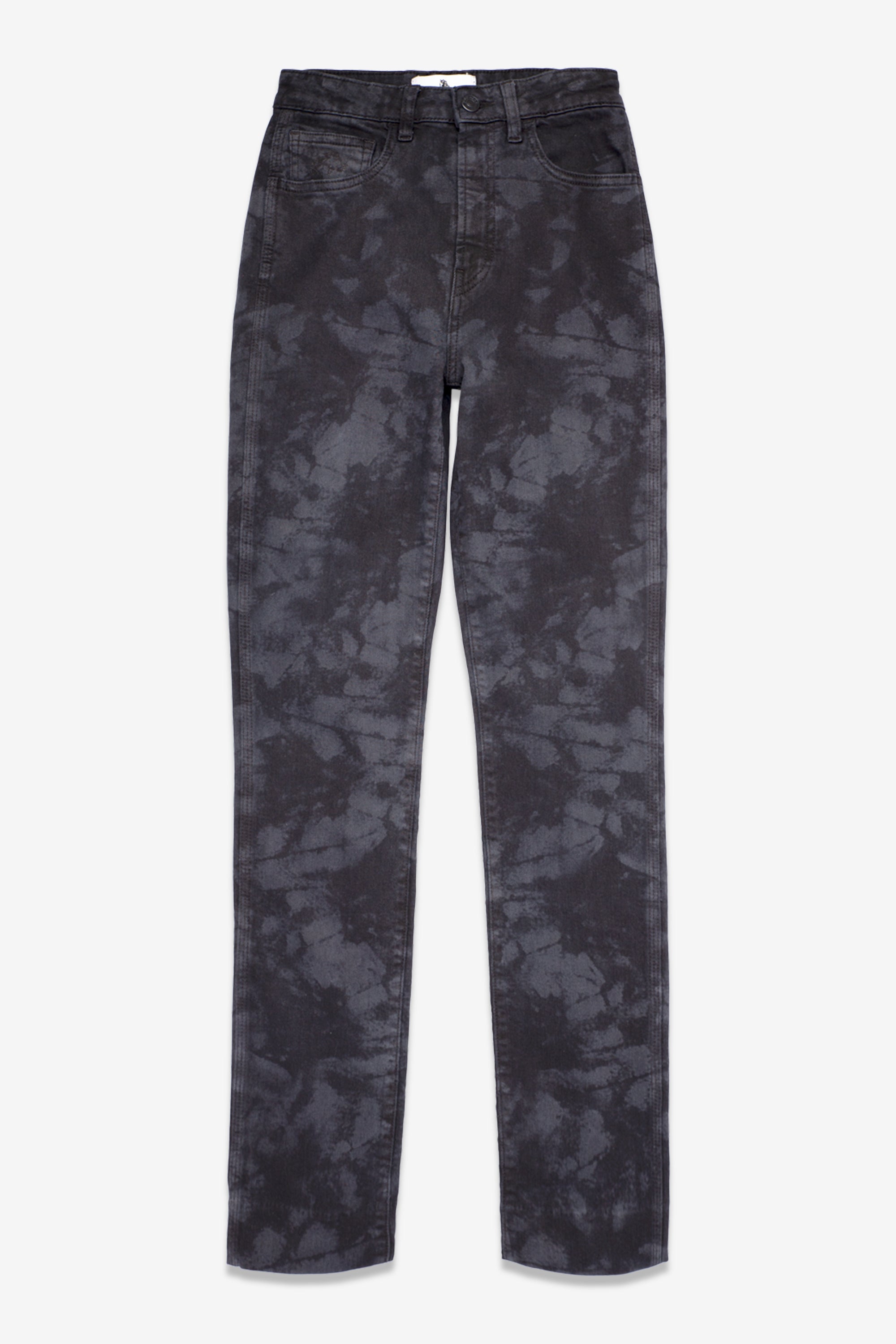 Playing on the current tie dye trend this subtle process is actually done with lasers. Creating a unique pattern and then dyed for a subtle black tie dye effect.