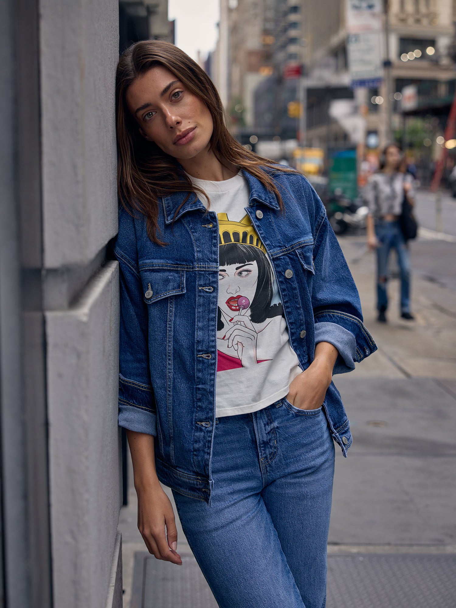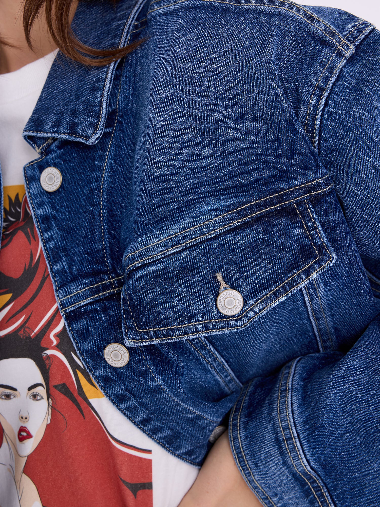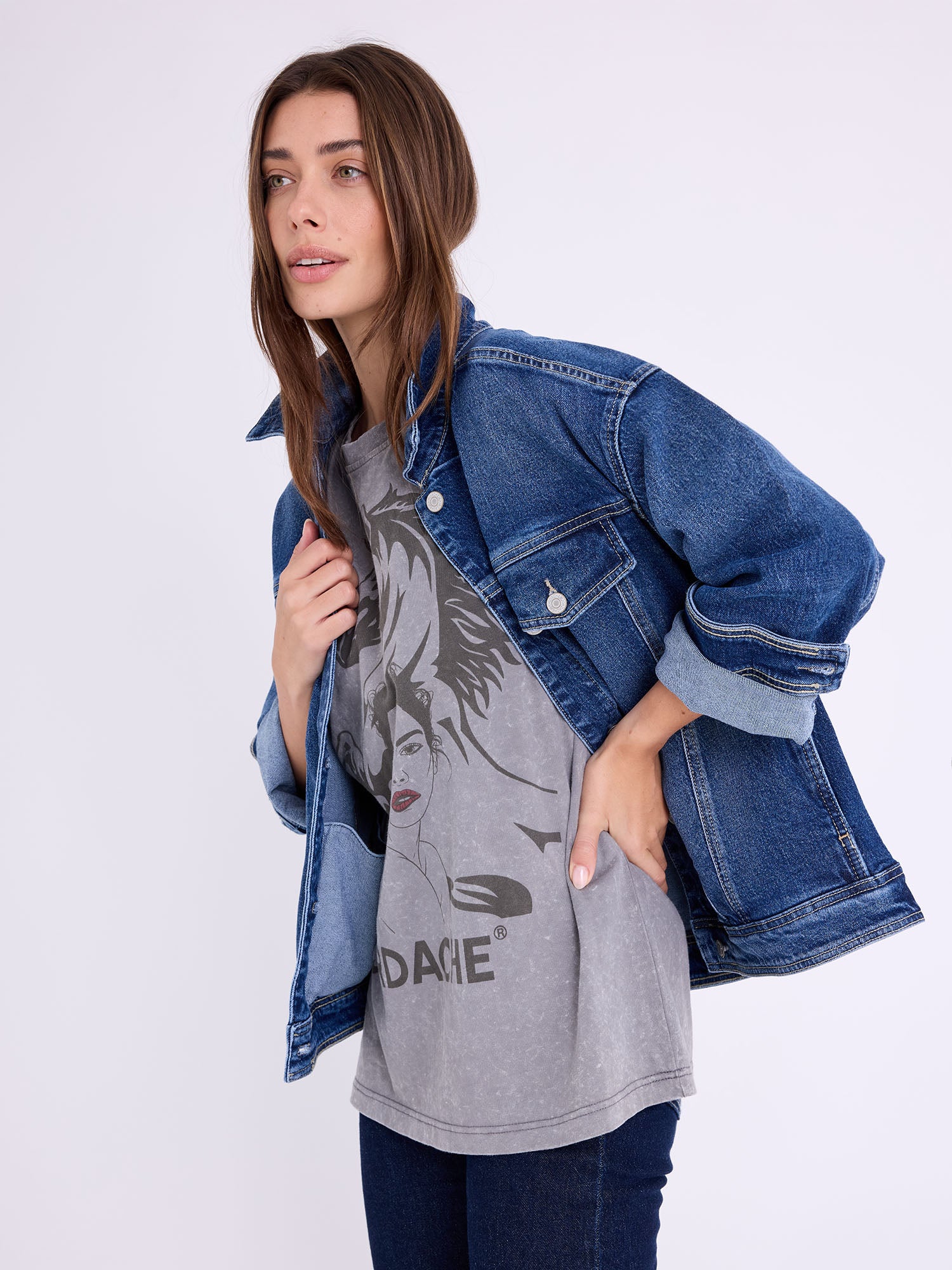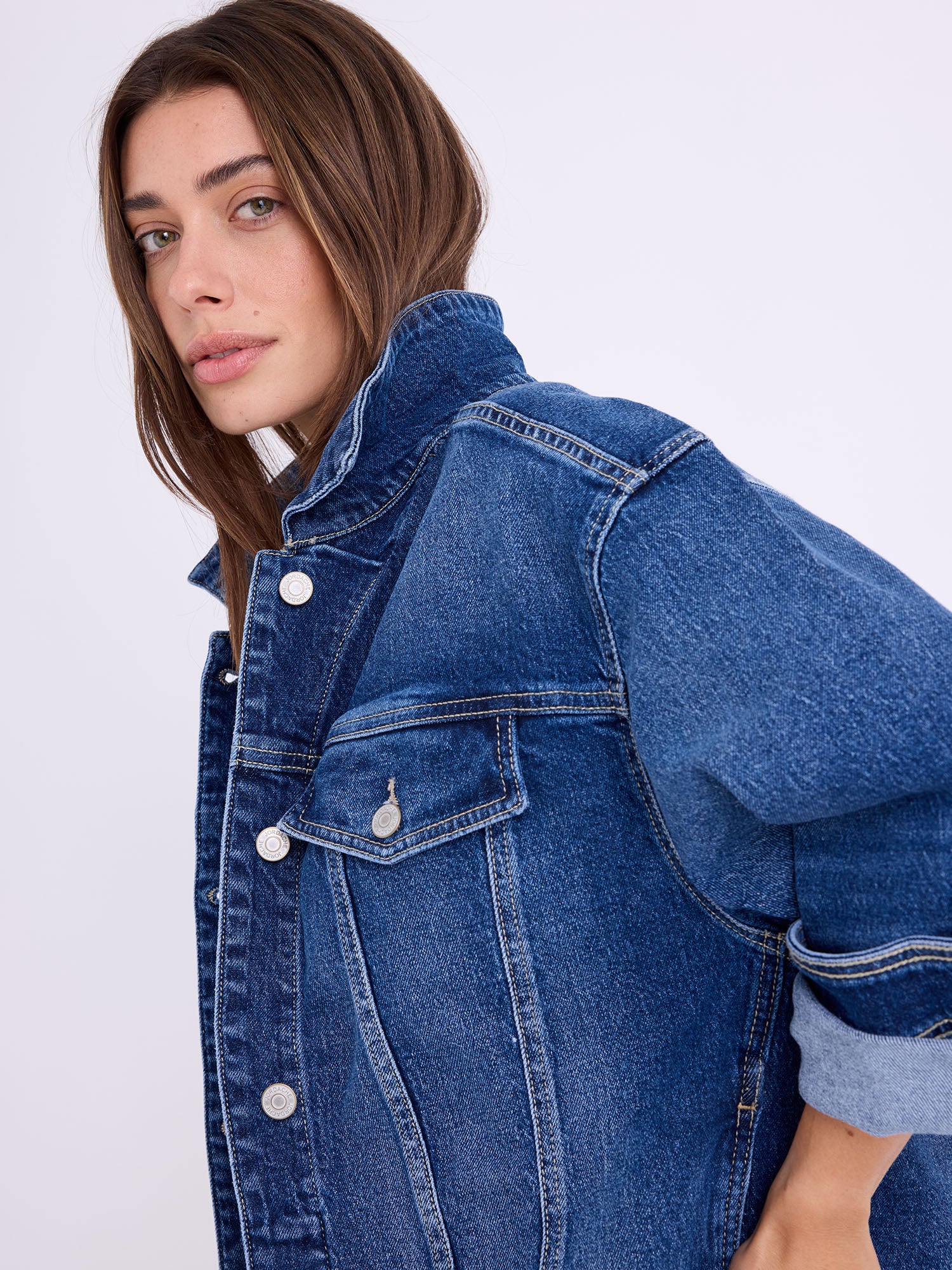 Kimmie Oversized Jacket – a relaxed layering piece in True Vintage Wash, nodding to classic Jordache outerwear. Pairs with Brooke High Rise Straight in True Vintage Wash.
